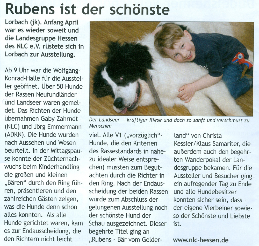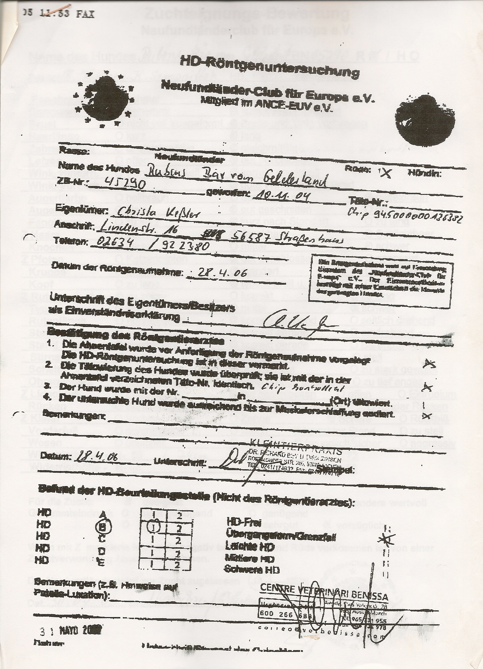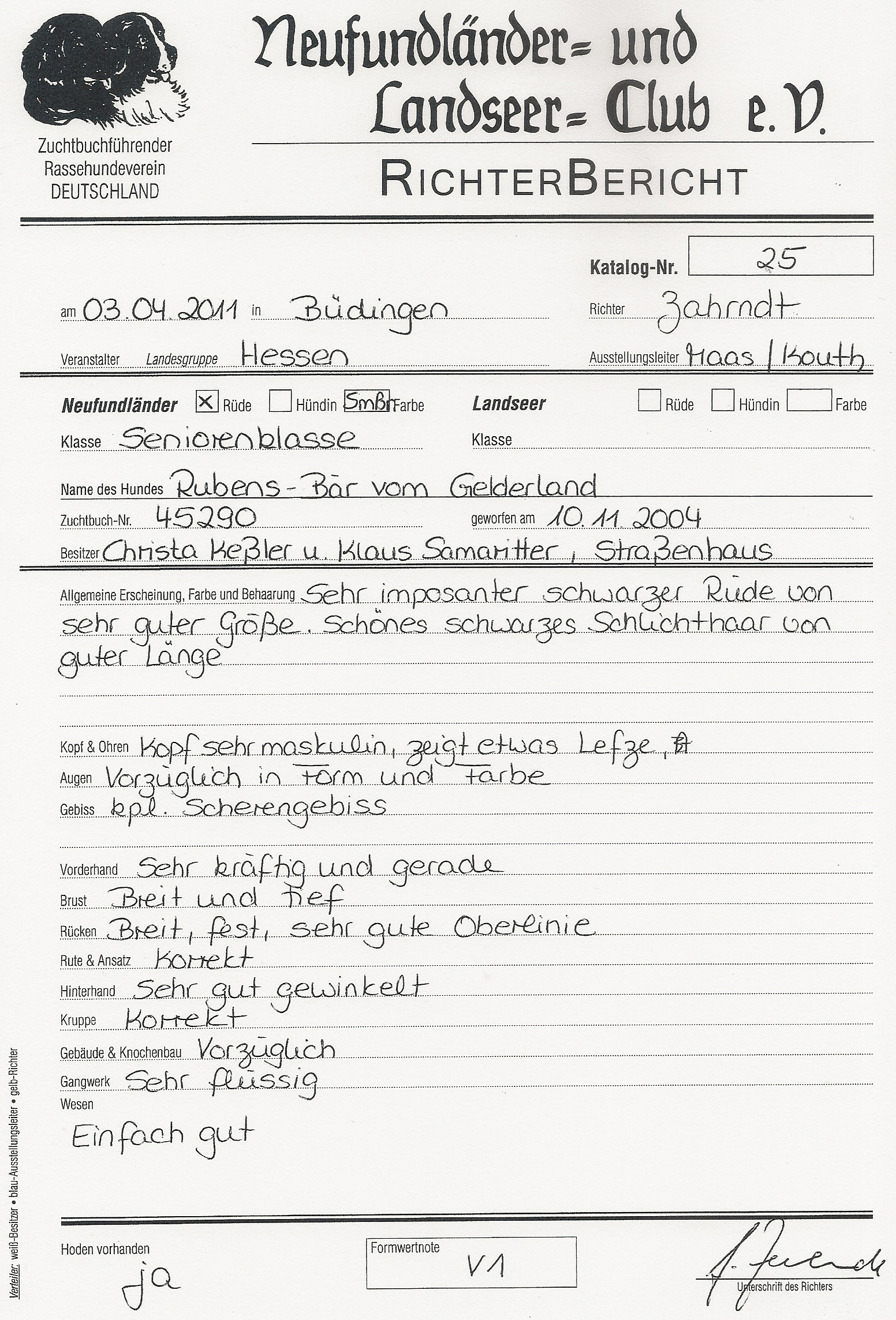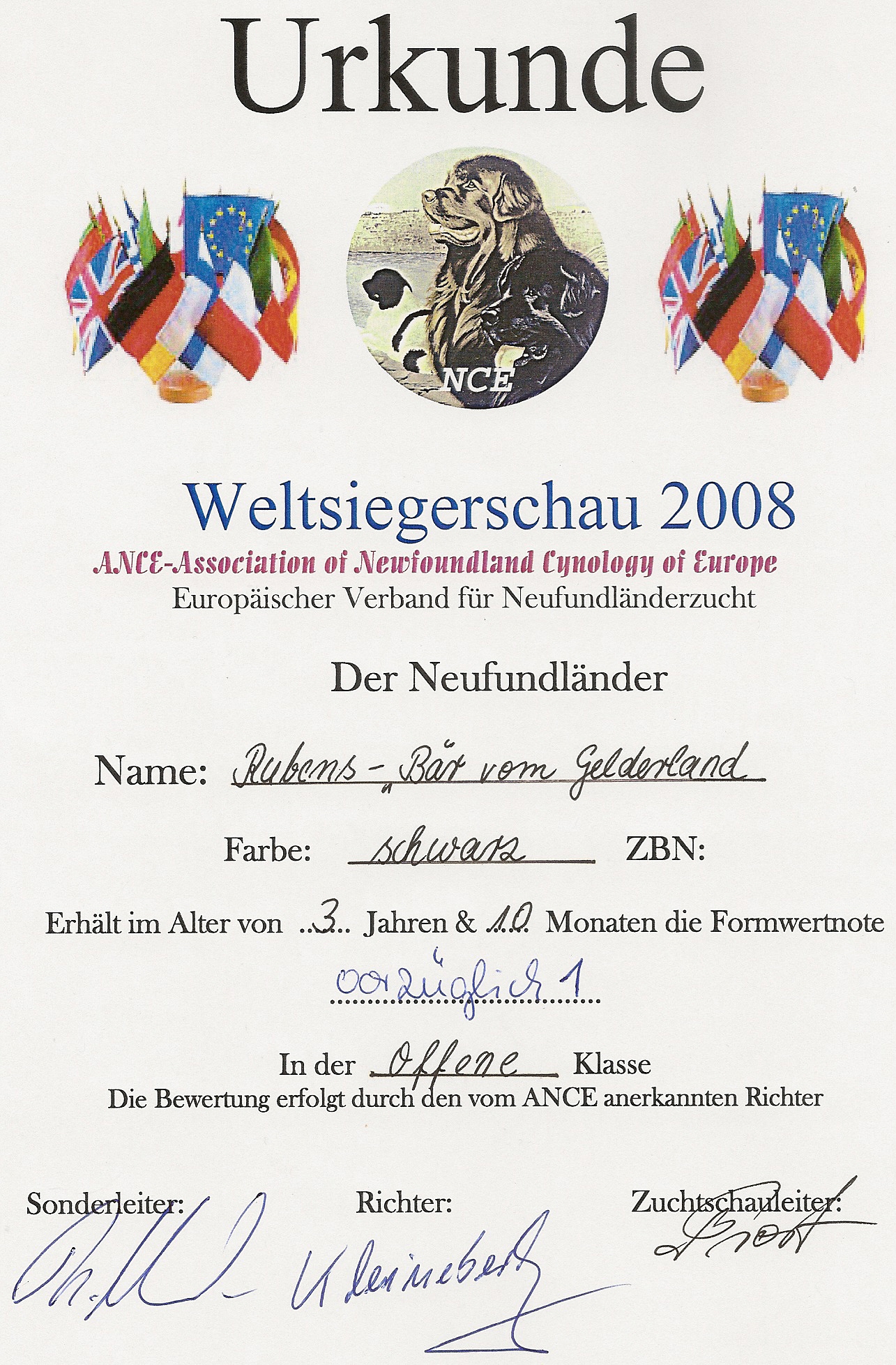 Im Neufundländerclub für Europa, in dem wir bis zum Jahr 2009 Mitglied waren, erhielt Ruby 2007 in der offenen Klasse die Wertung V 3.